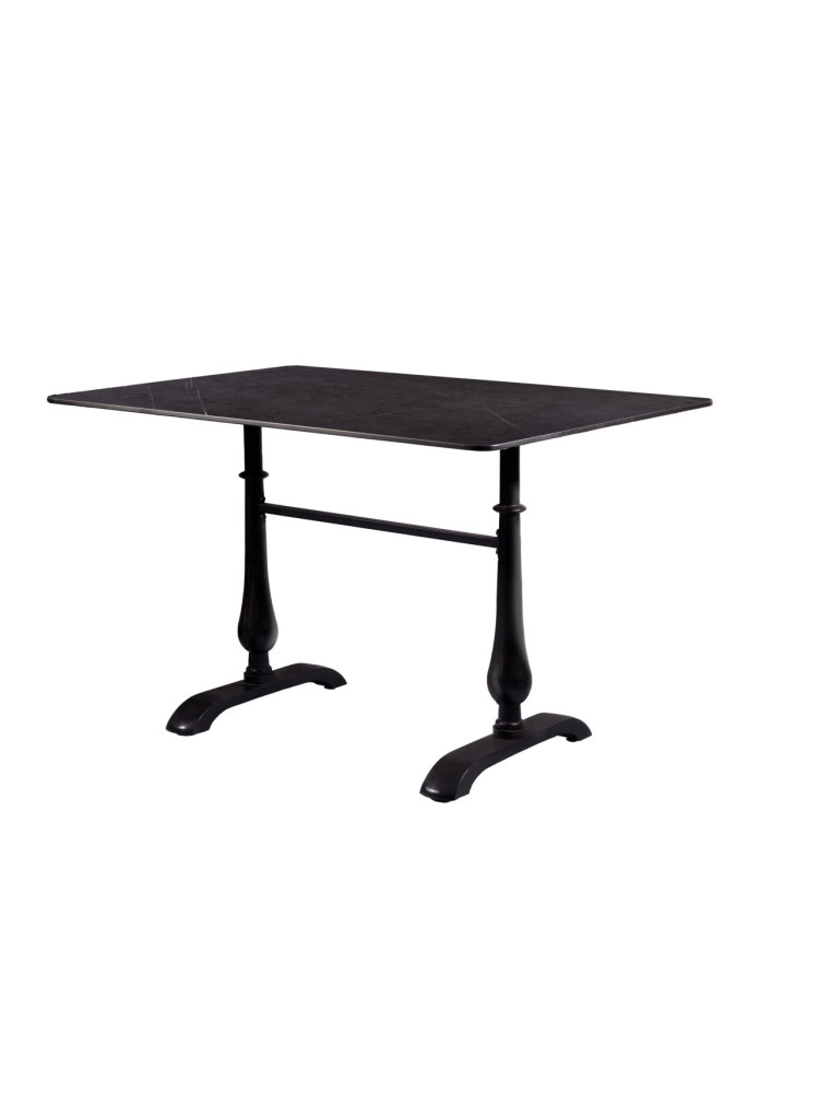 Стильный и практичный стол с металлическим основанием и столешницей из монолитного компакт-пластика HPL (толщина 12 мм). Этот материал известен своей прочностью, устойчивостью к перепадам температур и влаге, не требует специального ухода и идеально подходит как для использования в помещении, так и на открытых площадках — например, на летней террасе ресторана.